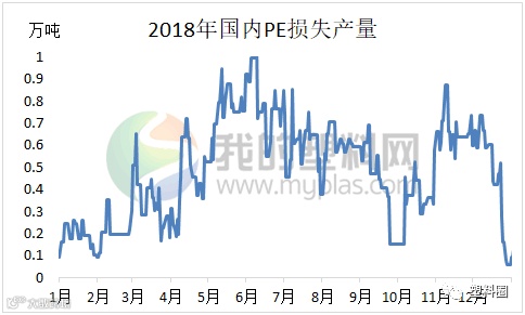 据统计来看,2019年国内共计17家PE生产企业有检修计划,涉及年产能总计761万吨,大约损失产量在63.8万吨。