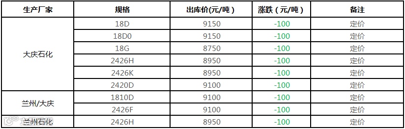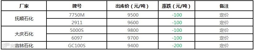 中油东北PE价格部分下调100-200元/吨!!!