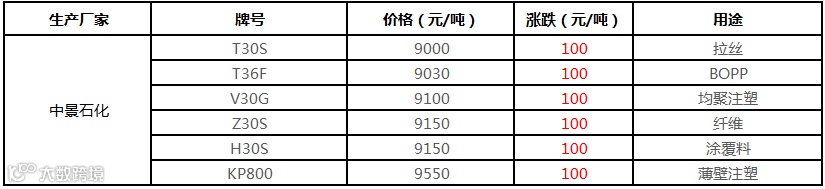中景石化PP出厂价格上调100元/吨