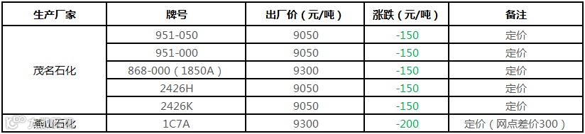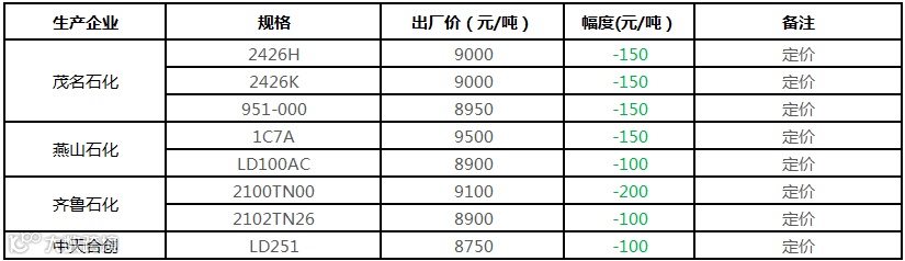 中油华东PE部分价格下调200-350元/吨!!!