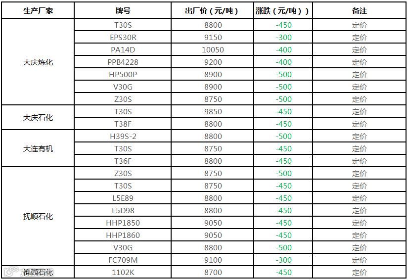 中油东北PP价格下调300-500元/吨!!!