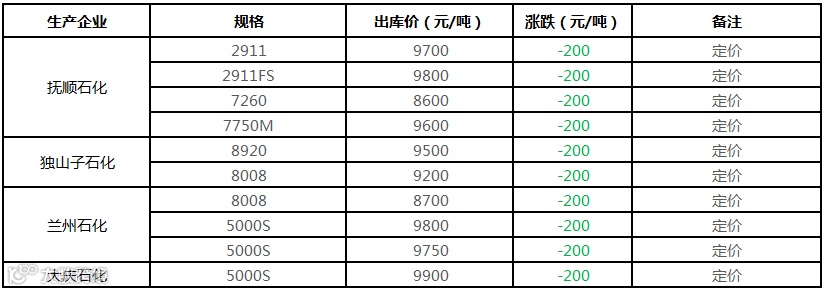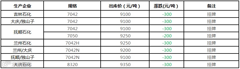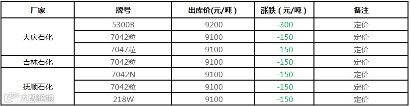 中油东北PE价格部分下调150-300元/吨!!!