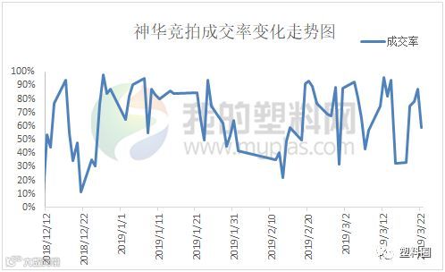 本周国内神华系列PP竞拍平均成交率在66.31%。其中成交率峰值出现在3月21日,成交率上升至87.11%,主因期货盘面高开上行,对业者心态有提振作用,市场询盘量较前期有所增加;国际油价双双上涨,成本面支撑增强;石化出厂价格多数稳定,场内货源成本支撑尚可。谷值成交率出现在3月18日,成交率跌至32.91%,主因期货盘面大幅下跌,对业者心态造成一定打压;石化库存维持高位水平,石化销售压力较大;贸易商多主动降价出货,市场价格重心下移;下游企业接盘情绪低迷,刚需补仓为主,短期内市场供应压力难有缓解。
