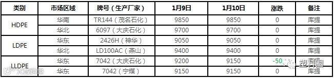 价格方面,线性华东及华南在50元/吨左右涨跌,华南因石化上调,高压价格上涨50-100元/吨,低压产品华北中空跌50元/吨,华南及华东部分注塑涨50-100元/吨。期货L1095盘面低位震荡,尾盘继续收跌,日内市场交易心太持续弱势。石化方面来看,今日部分销售分公司个别价格上调,其他产品多数维稳,成本面支撑导致华南地区高压价格高报,而其他平稳地区价格多数有所松动。目前在期货弱势影响下,下游工厂询盘积极性不高,市场成交热度有限,日内成交多数还是以刚需为主。神华竞拍线性日内成交在65.00%,低压产品流成交率在66.70%,高压成交维持在52.60%,总体成交率较上个交易日跌26.29%,在61.48%,今日溢价幅度在50-60元/吨。我的塑料网(www.myplas.com)预计明日PE价格窄幅整理走势,幅度继续维持在50元/吨左右。国内LLDPE主流市场价格在9000-9350元/吨,LDPE主流市场价格在8850-9250元/吨,HDPE膜主流市场价格在9550-10150元/吨。