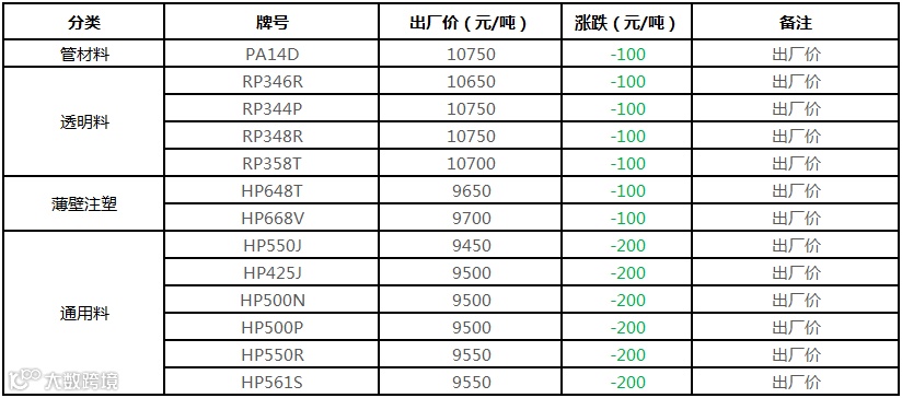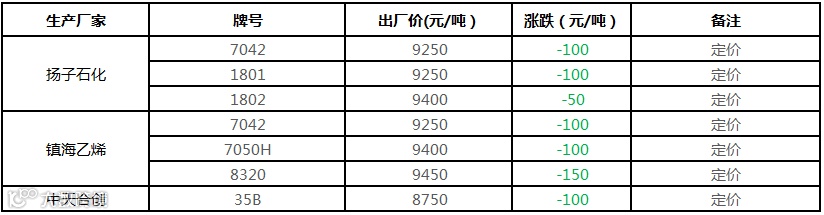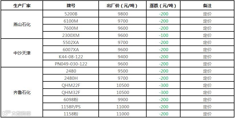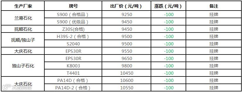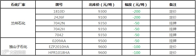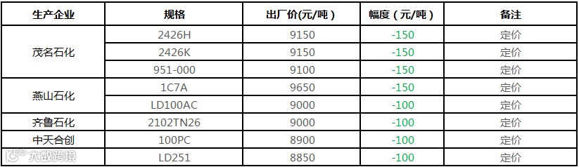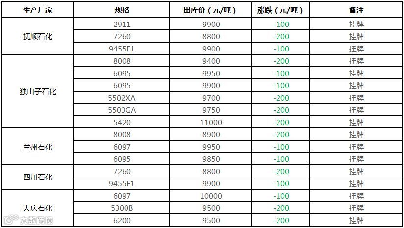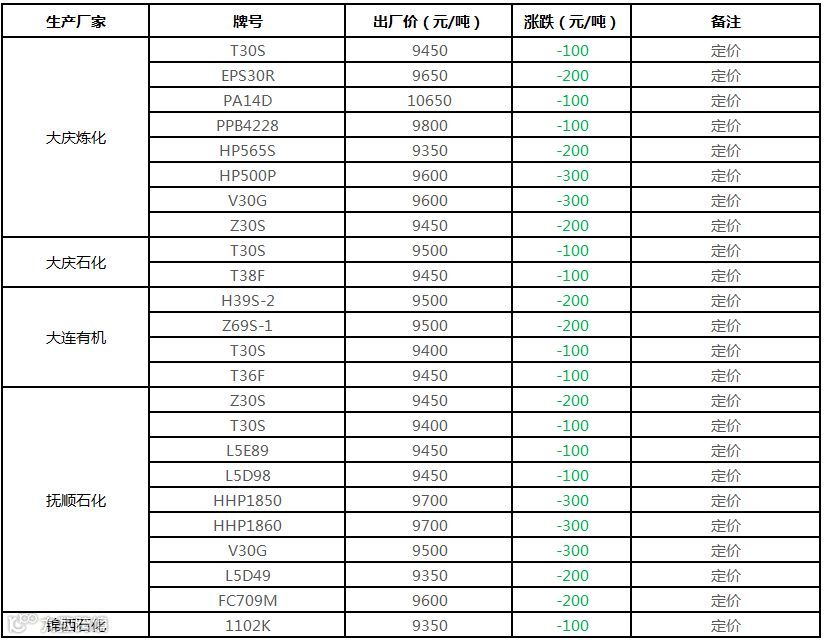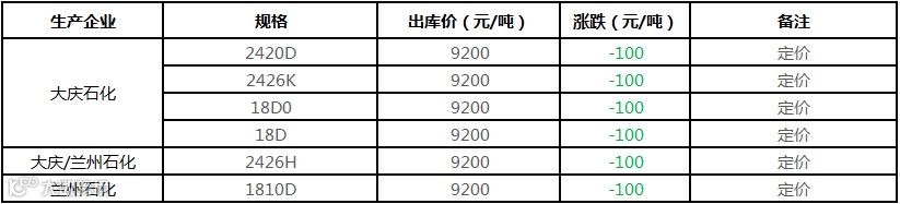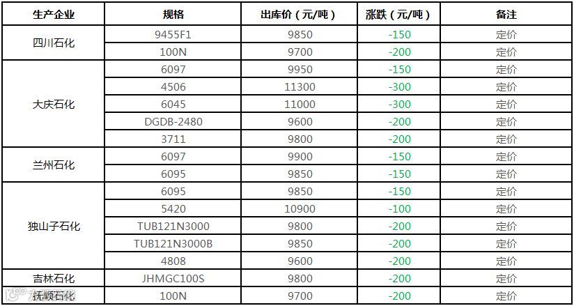 中油东北PE价格部分下调100元/吨!!!