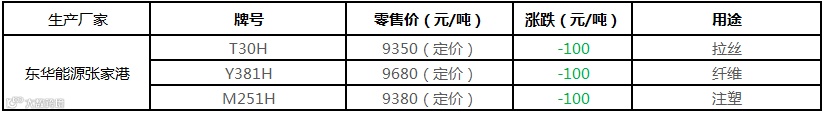 东华能源张家港PP出厂价格下调100元/吨