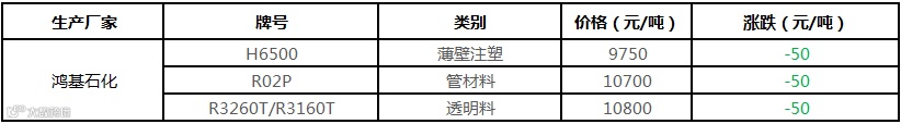 鸿基石化PP价格下调50元/吨