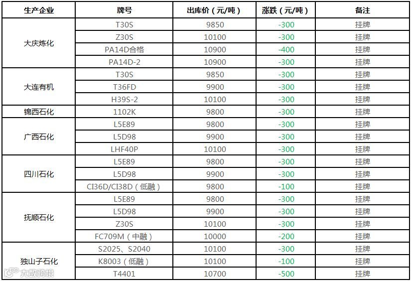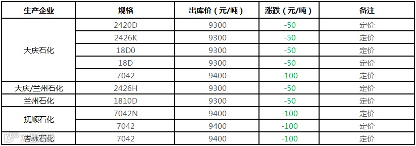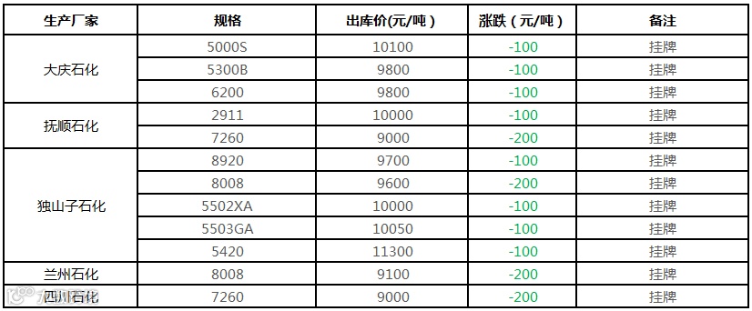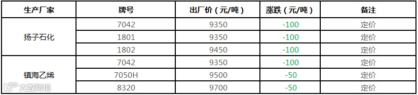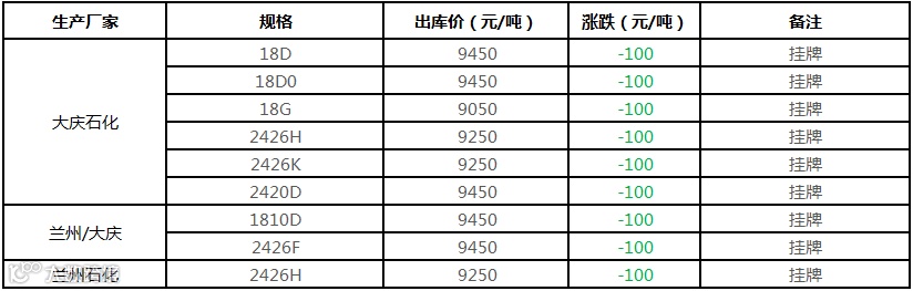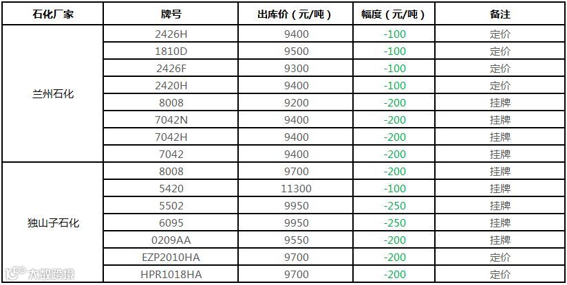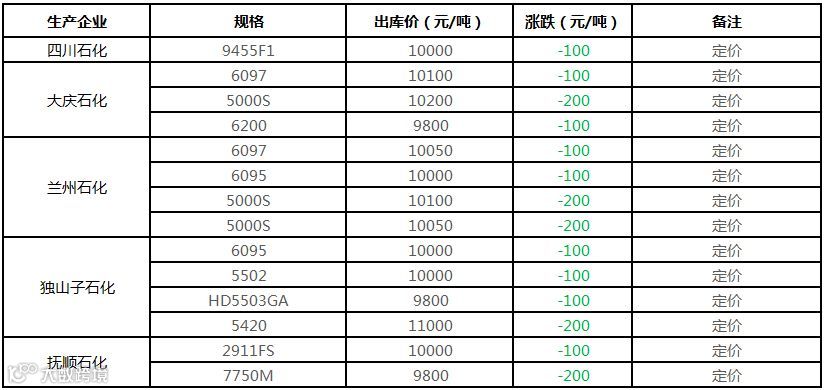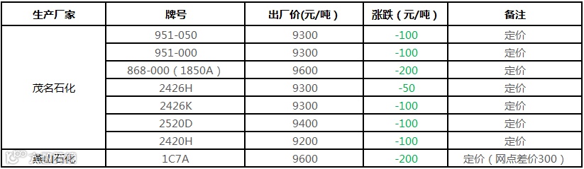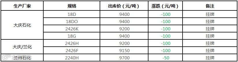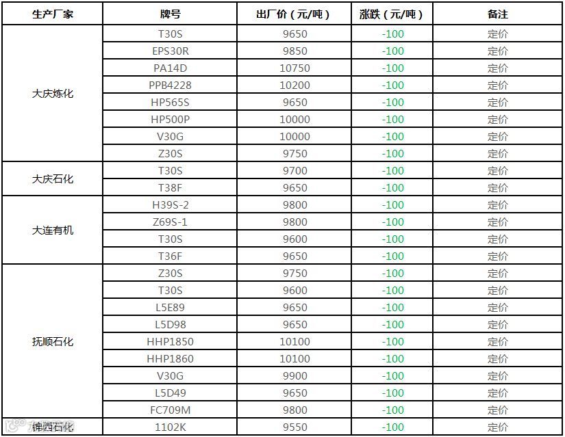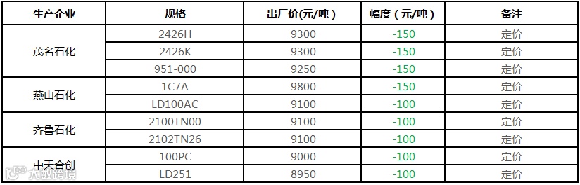 中油东北PE个别价格下调100元/吨!!!