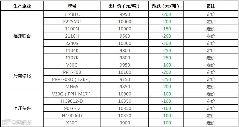 中油华南PP挂牌价格下调100-500元/吨!!!