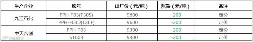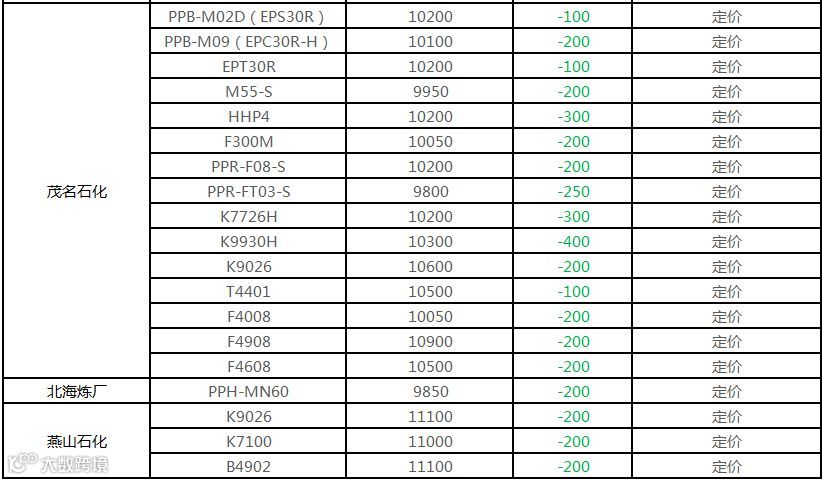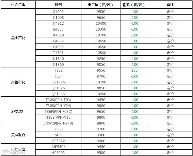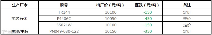 中油东北PP价格下调100元/吨!!!