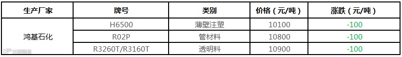 鸿基石化PP价格下调100元/吨