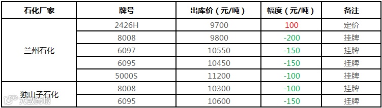 中油西北PE(兰州库)部分价格调整100-200元/吨!!!