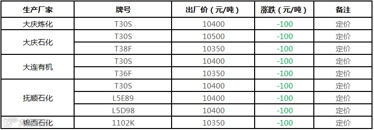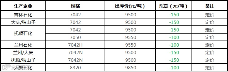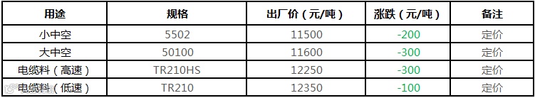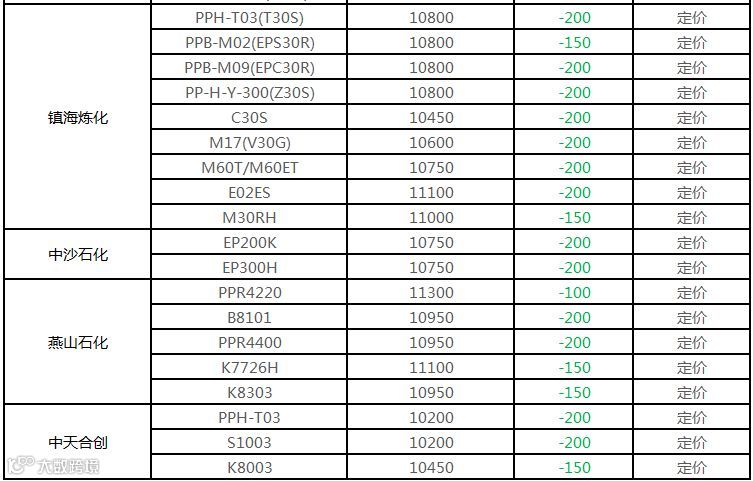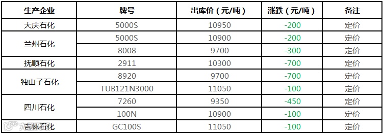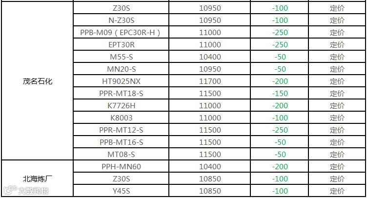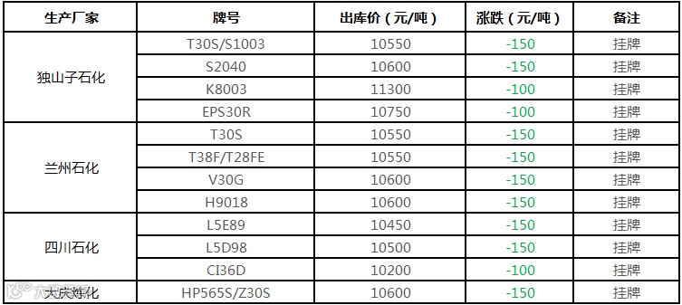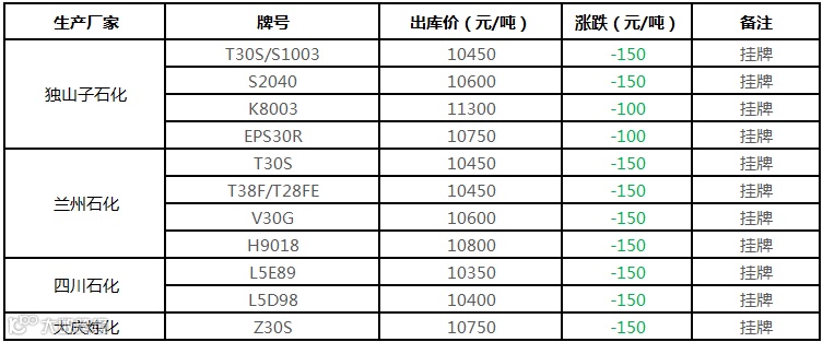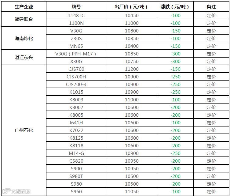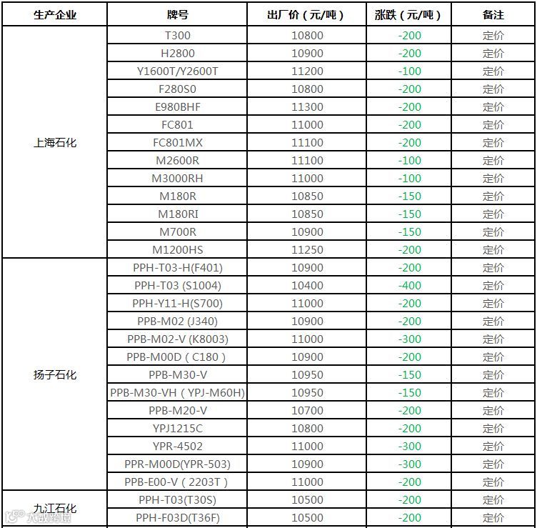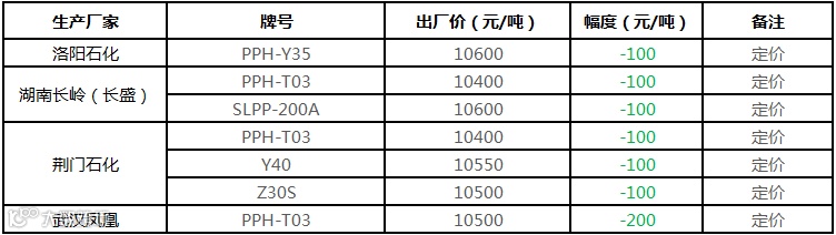 中油西南PP挂牌价格部分下调100-150元/吨!!!