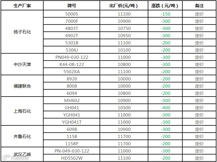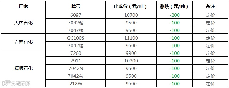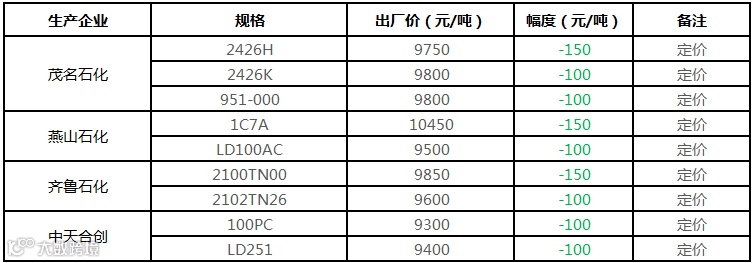 中油华东HDPE/LLDPE价格下调100-300元/吨!!!