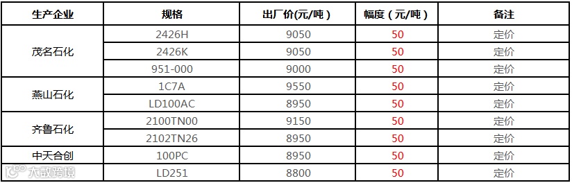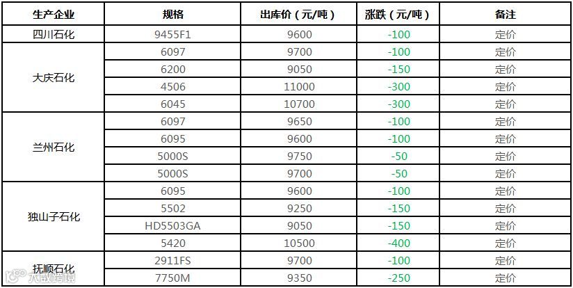 中油华东HDPE部分价格下调50-400元/吨!!!