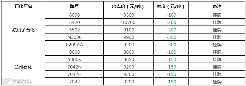 中油西北PE(兰州库)价格下调100-500元/吨!!!