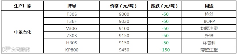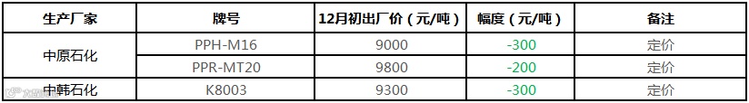 中石化华北PP月初部分定价下调100-200元/吨!!!