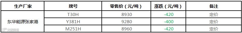 东华能源张家港PP出厂价格400-420元/吨
