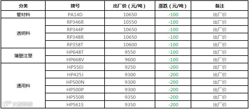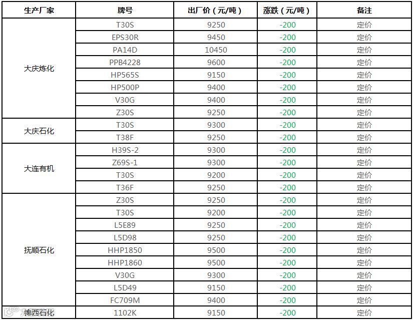 中油东北PP价格下调200元/吨!!!