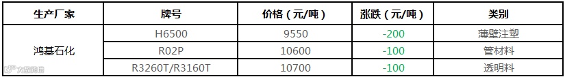 鸿基石化PP价格下调100-200元/吨