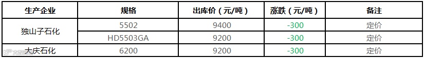 中油华东HDPE个别价格部分下调300元/吨!!!