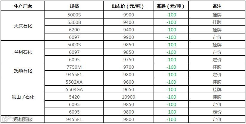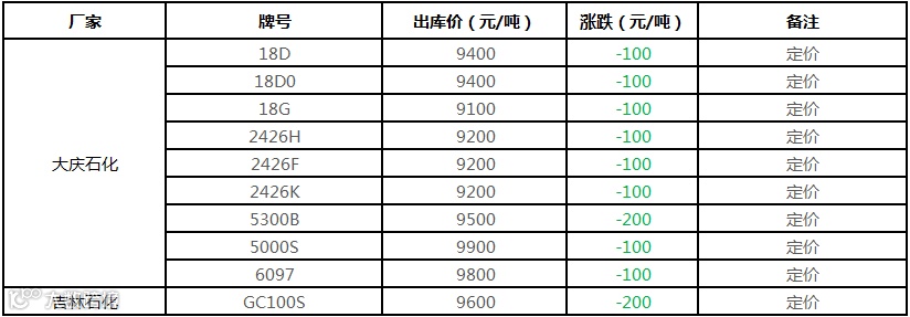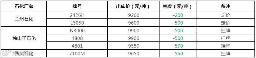 中油东北PE价格部分下调100-200元/吨!!!