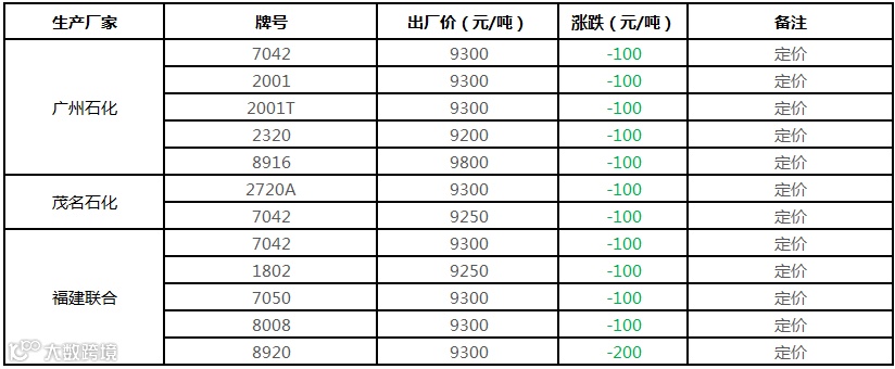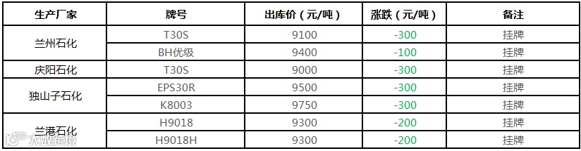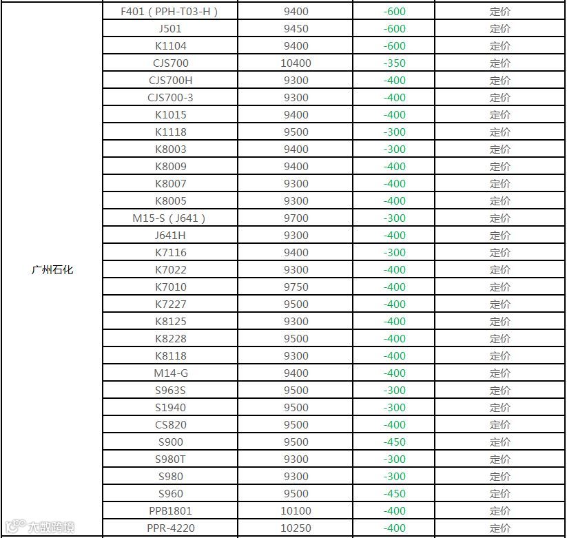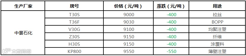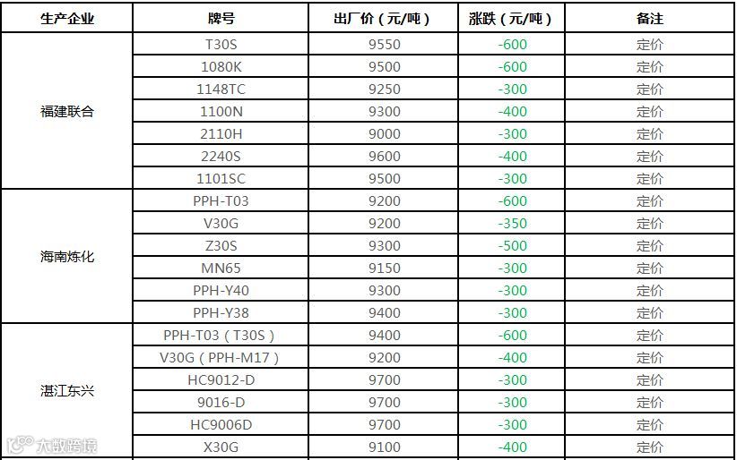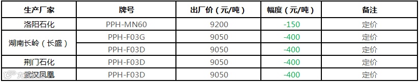中石化华南PP部分定价下调300-600元/吨!!!