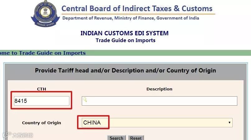 1. 选择国家,输入HS码(试用这次中枪的空调产品“8415”查询)