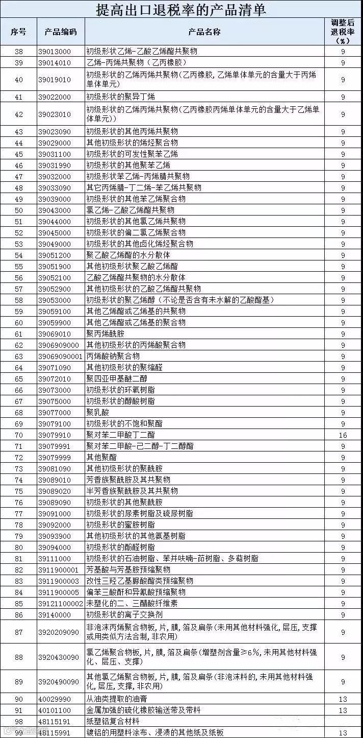 9月15日起,塑料化工产品等共计397项产品出口退税率获得大幅提高,其中部分商品退税率直接由0跳升至16%!