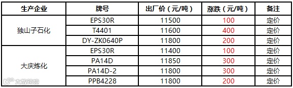 中油东北PE个别价格上调300元/吨!!!