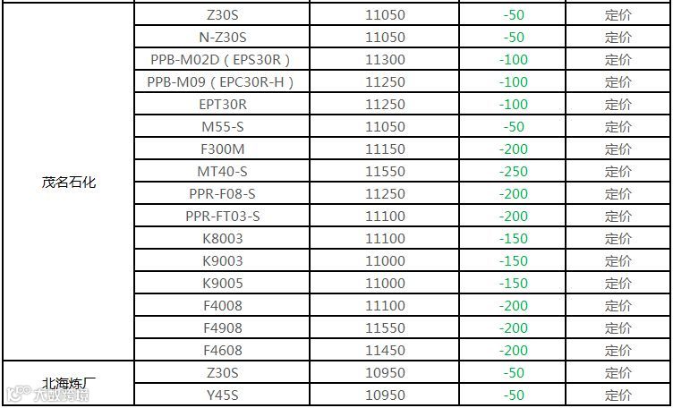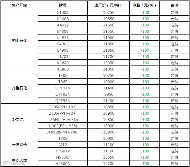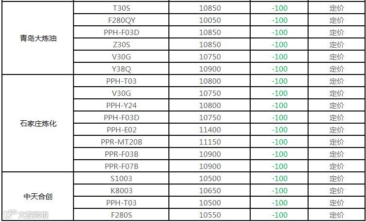 中油东北PP定价部分下调100元/吨!!!