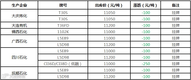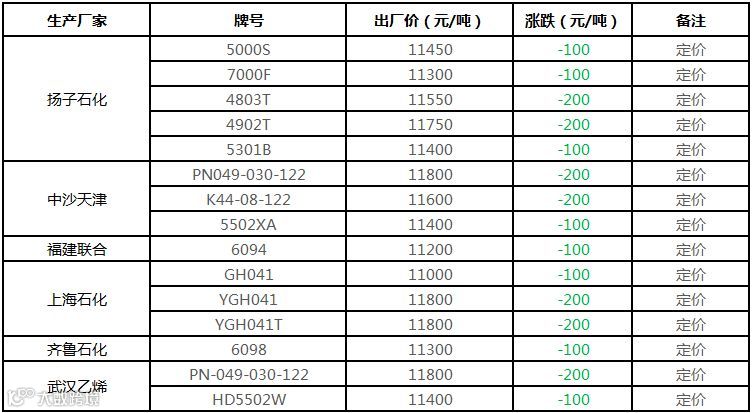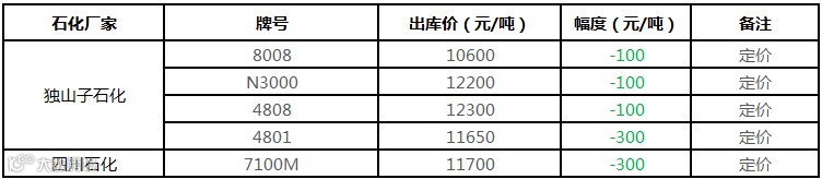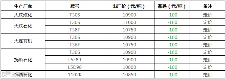 中油东北PE价格部分下调100元/吨!!!