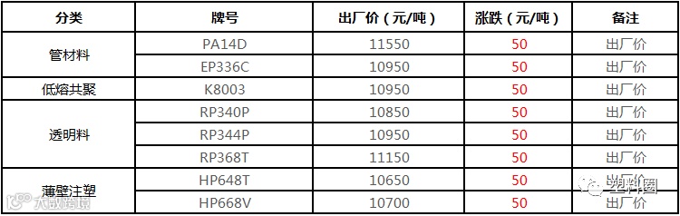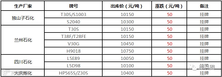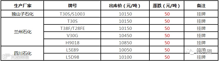 中油东北PP价格部分上调50元/吨!!!