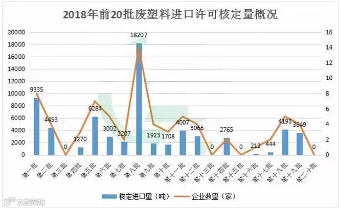 近日,2018年国内第20批限制进口类名单新鲜出炉,本次公布的名单中废塑料的总核定量为0,这也是2018年第4次出现废塑料总核定量为0的情况。