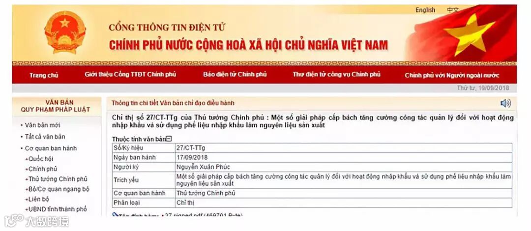 9月17日从越南官方网站获悉,越南总理阮春福(Nguyễn Xuân Phúc)签署27/CT-TTg号指令,要求采取紧急措施,加强进口和使用进口废料作为生产原料的管理。
