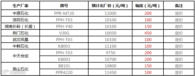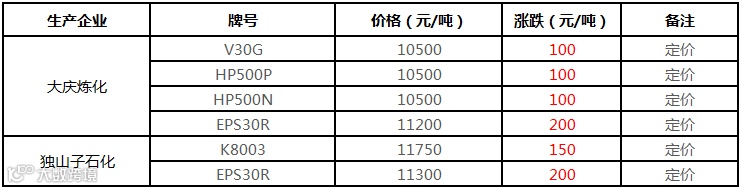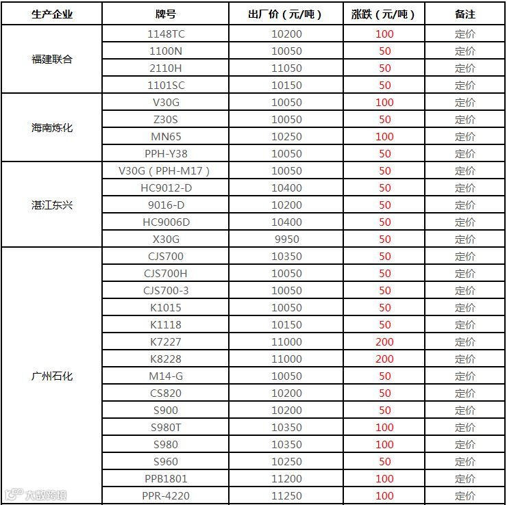 中油西南PP挂牌价格部分上调100元/吨!!!