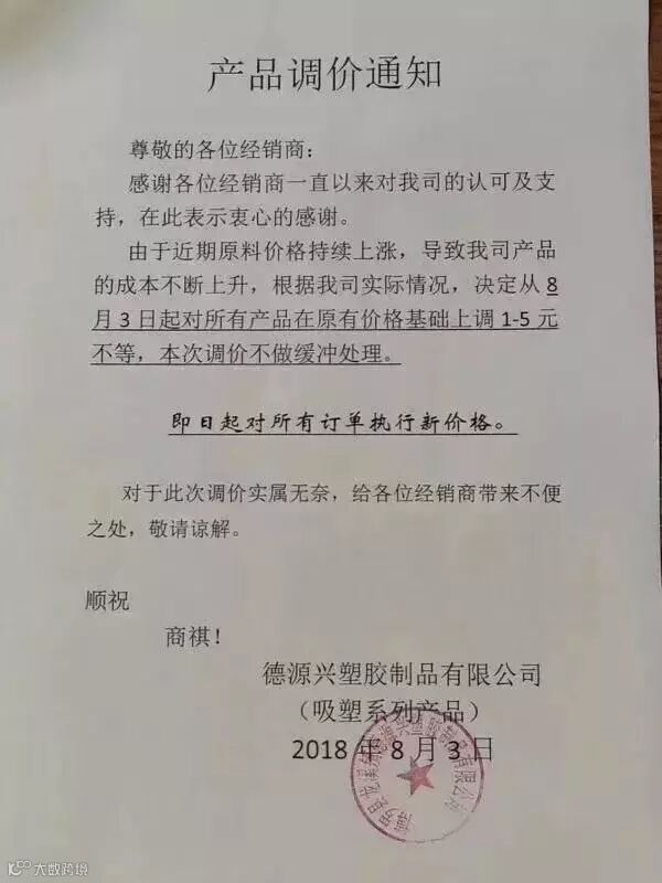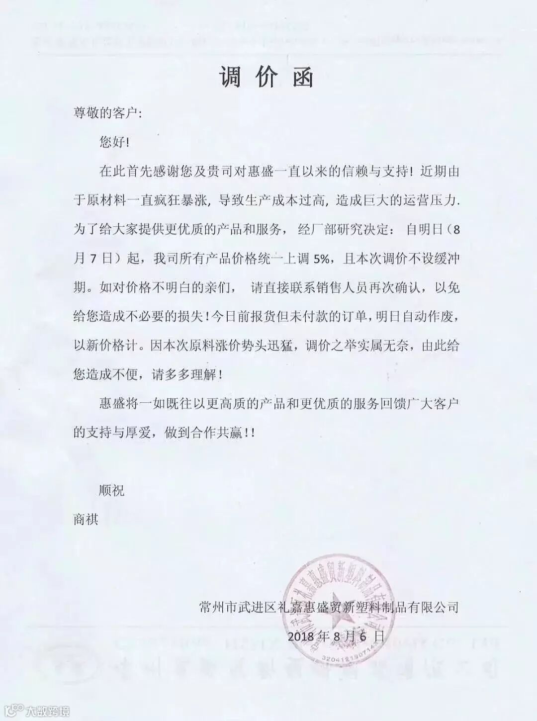 国家下发了下半年的污染防治攻坚计划,塑料行业停产整顿,产能大幅锐减!近期各地环保督查纷纷入驻,限电、停产的声音纷纷响起,原材料的价格开始缓慢上涨,有的地方已经出现缺货、断货情况。不少塑料企业的朋友,在朋友圈发消息道歉,由于停产整改,不能按时交货!还有不少干塑料的朋友给塑爷发来停电、停产整改通知。