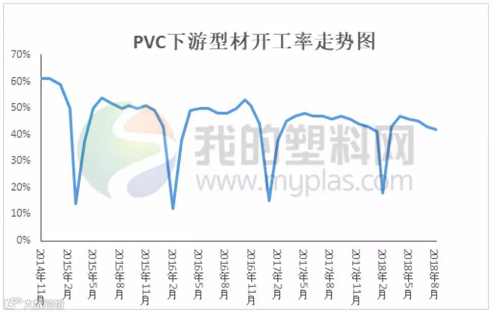 从历年PVC型材企业开工情况来看,除在春节期间制品企业降幅明显外,其余时间变动不大。仅表现为夏季会有一定的降幅,而随着天气转凉企业开工则有一定提升。据我的塑料网对下游制品企业调研发现,当前PVC制品企业订单量普遍有小幅增加,特别是管材方面企业开工出现提升。对部分中小制品企业来说,原停产的企业也陆续开工。而板材、型材、以及膜类企业开工基本变动不大。当前价格下制品企业利润尚可,虽然多数建仓意愿不高,但刚需也有所提升,加之后期订单增长预期下需求面仍有向好趋势。