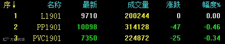 反弹动能减弱,塑料相关品种期货回调至5日均线附近测试支撑。具体来看:塑料1901收9710稳;V1901收7350跌25,跌幅0.34%;PP1901收10098跌47,跌幅0.46%。