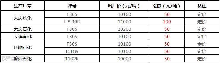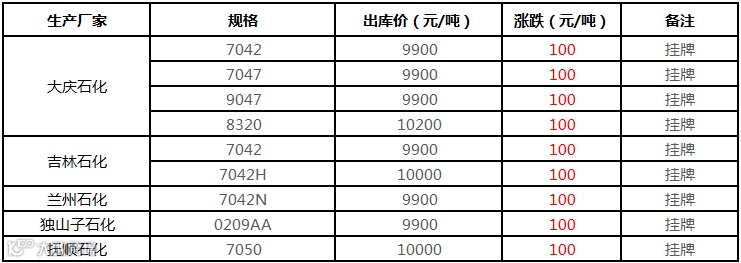 中油东北LLDPE/HDPE价格上调100元/吨!!!