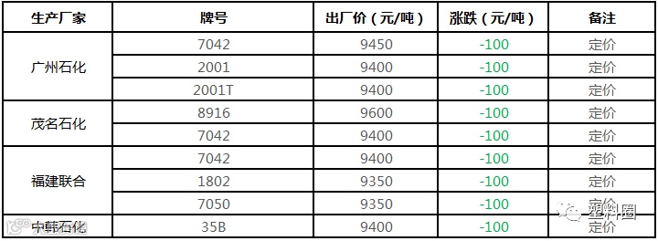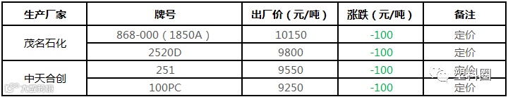 中石化华南PE定价部分下调100元/吨!!!