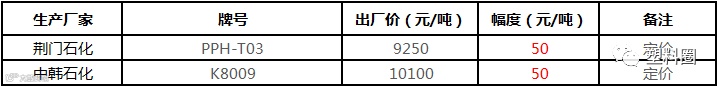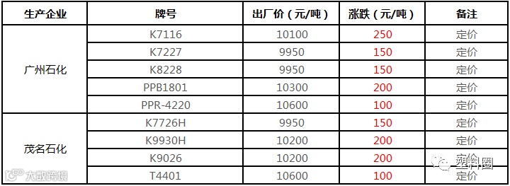 中石化华南PP最新定价上调100-250元/吨!!!