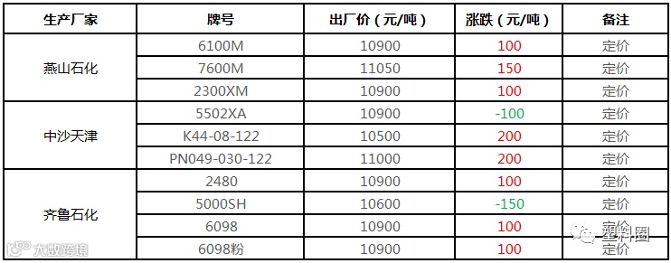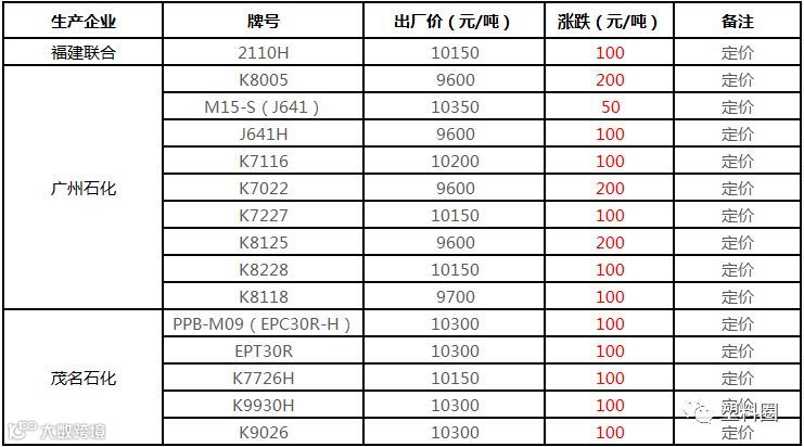 中石化华南PP个别牌号定价涨50-200元/吨!!!