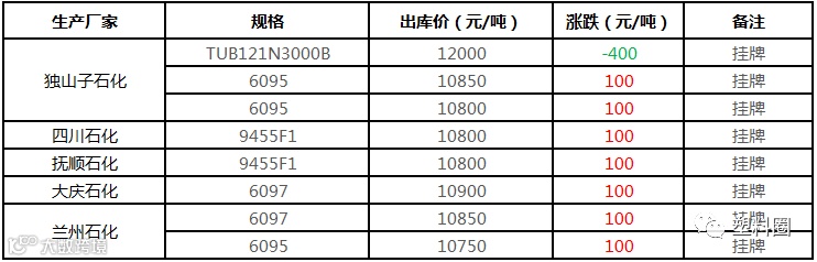 中油西北PP挂牌价格上调50-100元/吨!!!