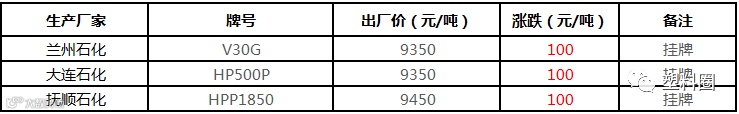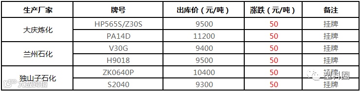 中油西南PP挂牌价格部分上调50元/吨!!!