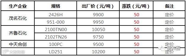 中油东北HDPE定价上调100元/吨!!!