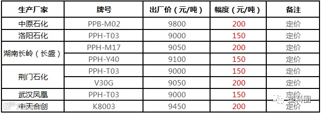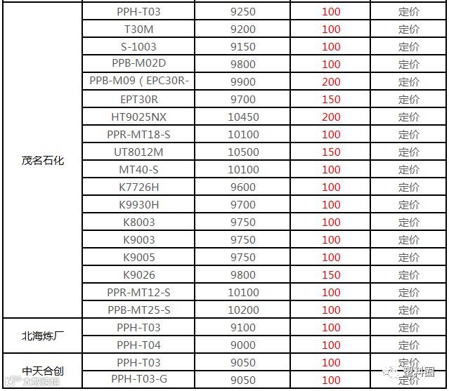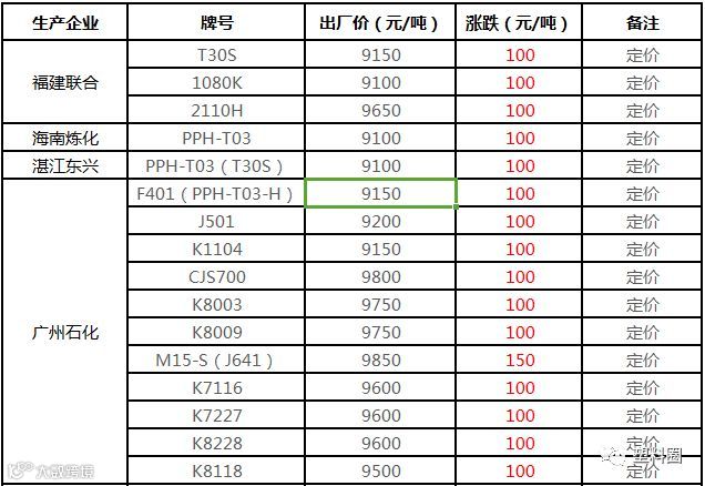 中油华南PP挂牌价格部分上调50-100元/吨!!!