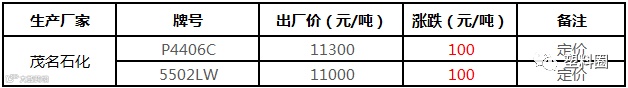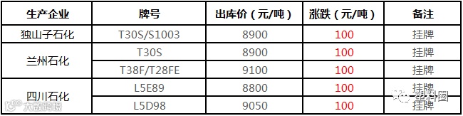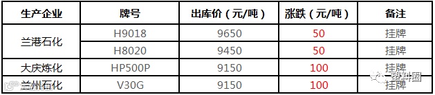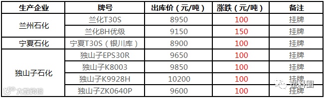 中油西南PP挂牌价格部分上调100元/吨!!!