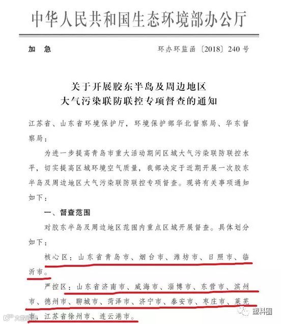 据相关消息,生态环境部于近日发布了关于开展胶东半岛及周边地区大气污染联防联控专项督查的加急通知,对胶东半岛及周边地区范围内重点区域开展督查。