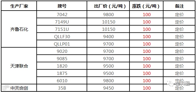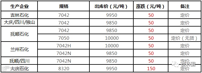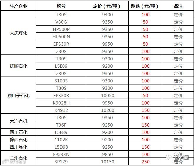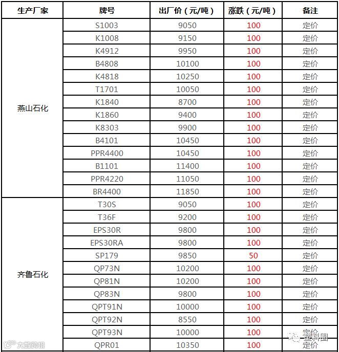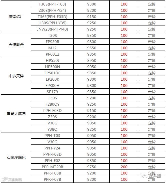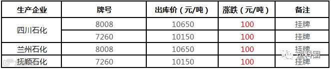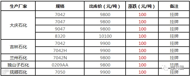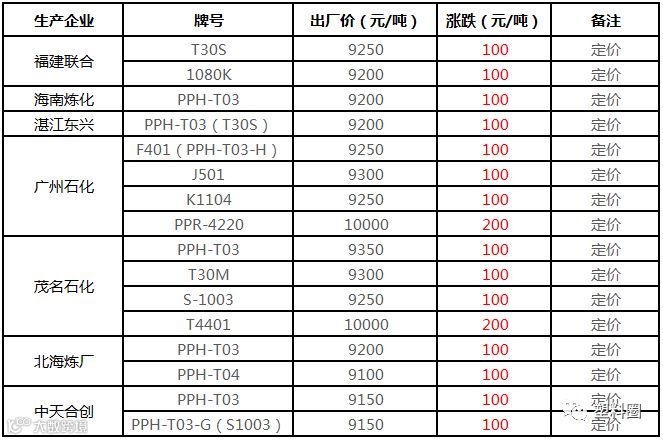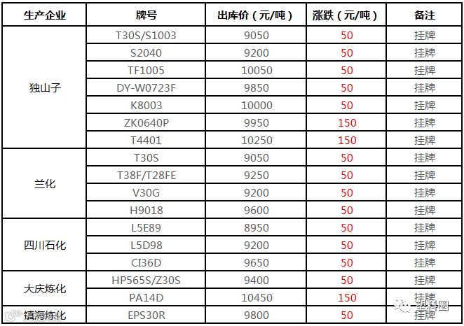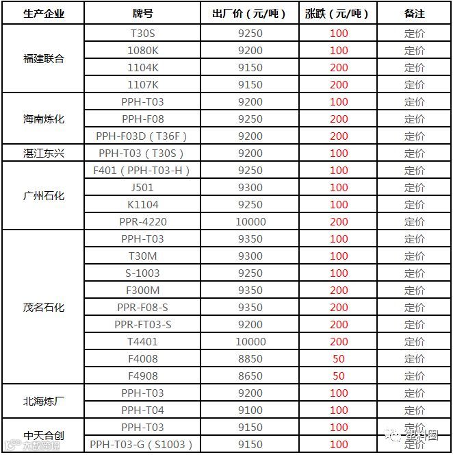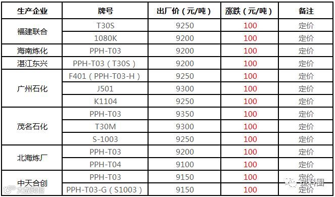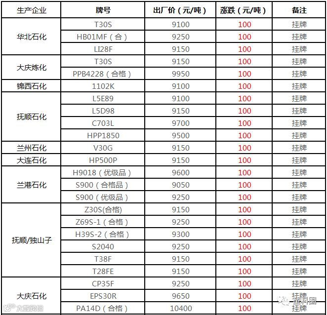 中油华南PP挂牌价格部分上调100元/吨!!!